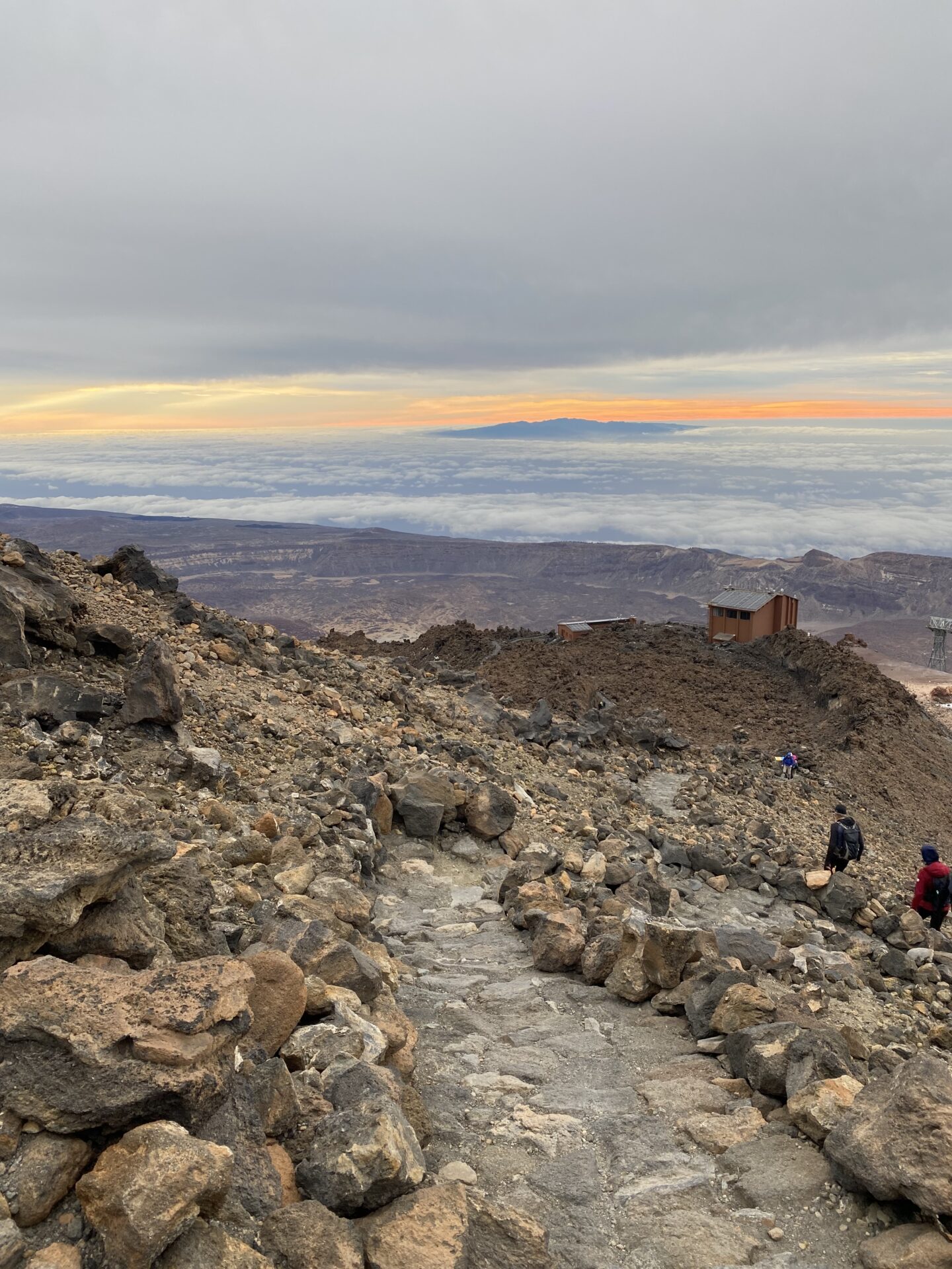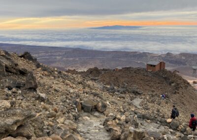 Cada paso merece la pena y el esfuerzo hecho ya desde la cumbre. Nos maravillaremos con las impresionantes vistas de toda la majestuosa caldera del Teide, un cuadro paisajístico incomparable. En días claros, descubre el espectáculo asombroso de todas las islas flotando en el vasto océano Atlántico. Un momento mágico e inolvidable.